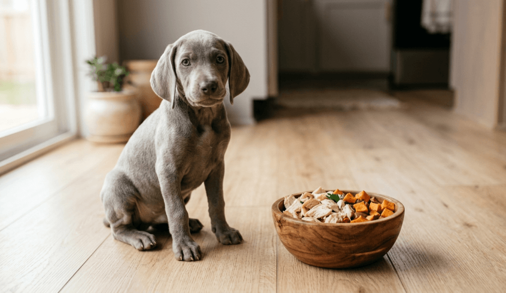 A alimentação é uma das primeiras grandes dúvidas. E também uma das mais importantes — porque o que acontece nos primeiros 12 meses de vida de um cão determina boa parte da saúde que ele vai carregar pelo resto da vida. Sistema imunológico, densidade óssea, saúde intestinal, desenvolvimento cerebral. Tudo isso está sendo construído agora, na tigela, refeição por refeição.