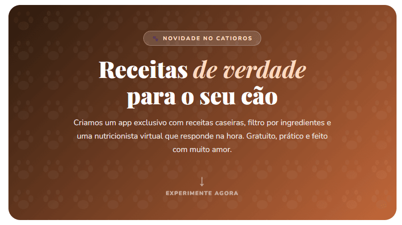 👉 Acesse agora em receitas.catioros.com.br e deixa a Catia criar a primeira receita anti-inflamatória personalizada para o seu cão. Seu cão não consegue te pedir ajuda com palavras — mas o corpo dele está pedindo o tempo todo. 🐾