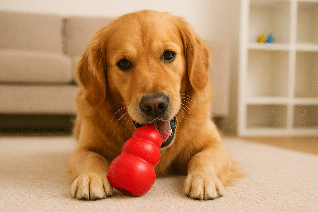 Disponível em diferentes tamanhos e níveis de resistência (existe até versão para filhotes e para mastigadores extremos), o Kong se adapta a praticamente qualquer cachorro. É lavável, atóxico e praticamente indestrutível quando usado corretamente.